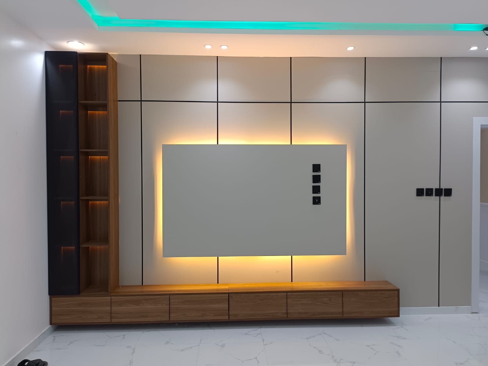 1. ​ديكورات الأسقف: تنفيذ أسقف جبس بورد، أسقف معلقة، وتركيب الإضاءة المخفية والـ سبوت لايت بأسلوب فني.