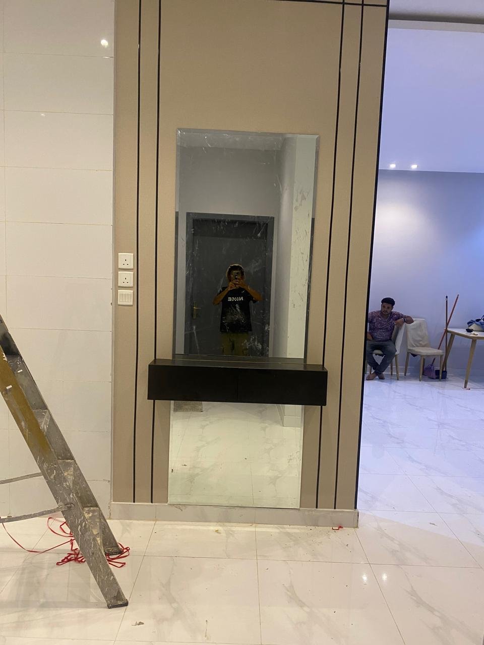 3. ​التركيب المتقن: باستخدام أدوات ومواد لاصقة مخصصة، يضمن المعلم تثبيت الألواح بشكل مستوٍ ومحكم، مع إمكانية دمجها مع فواصل استيل ✨ أو إضاءة مخفية لإبراز الجمال.